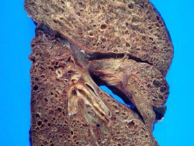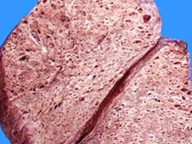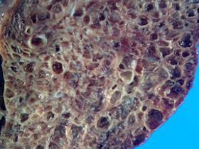 Detalhe do pulmão explantado com cistos difusos